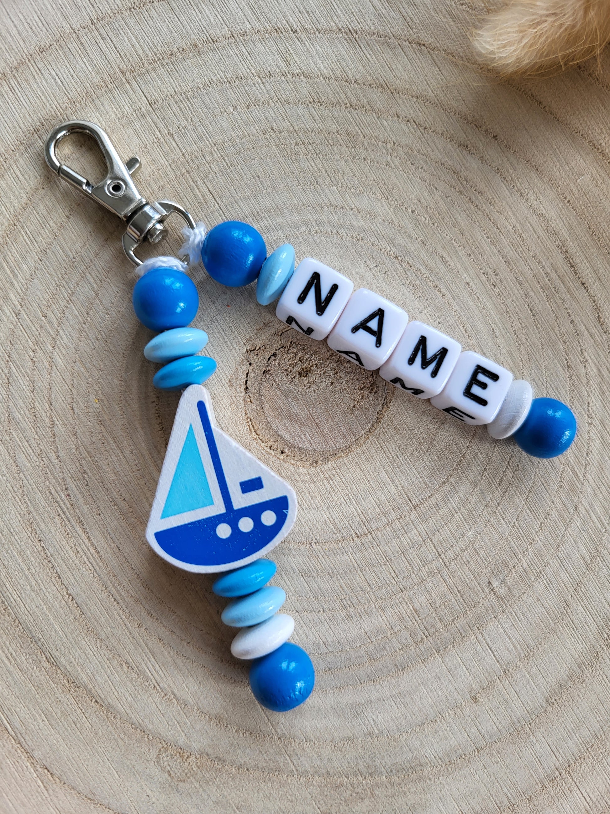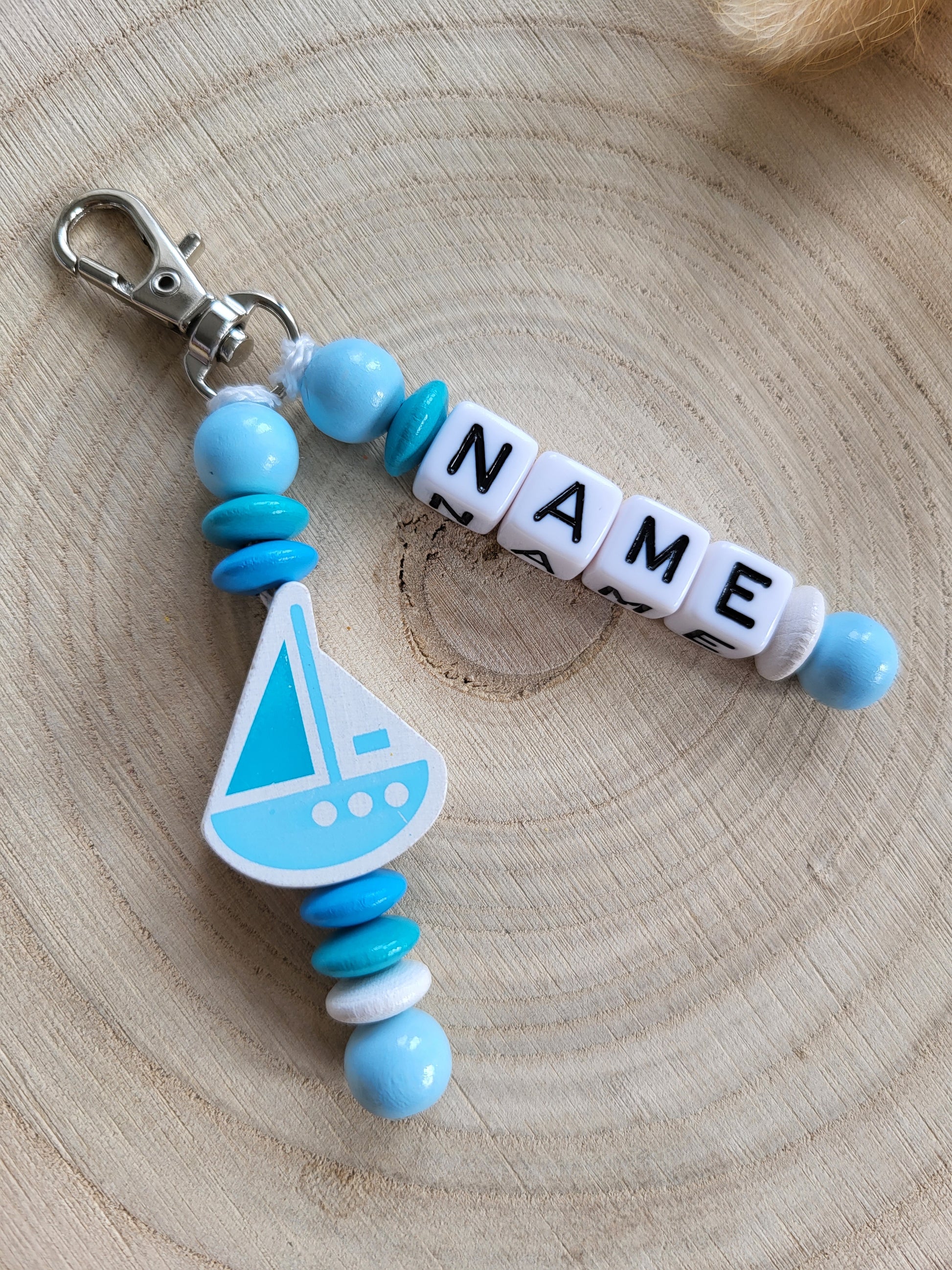 Personalisierter Anhänger mit Schiffchen Motiv.