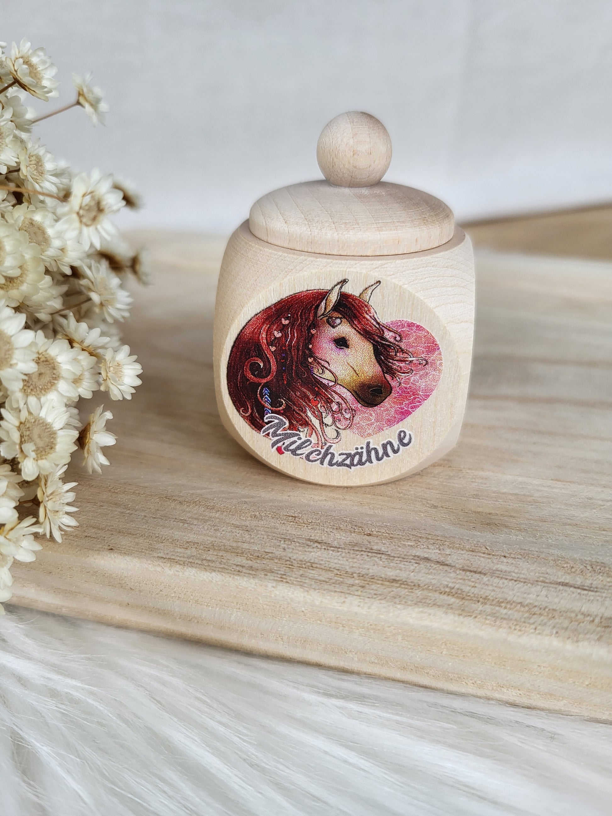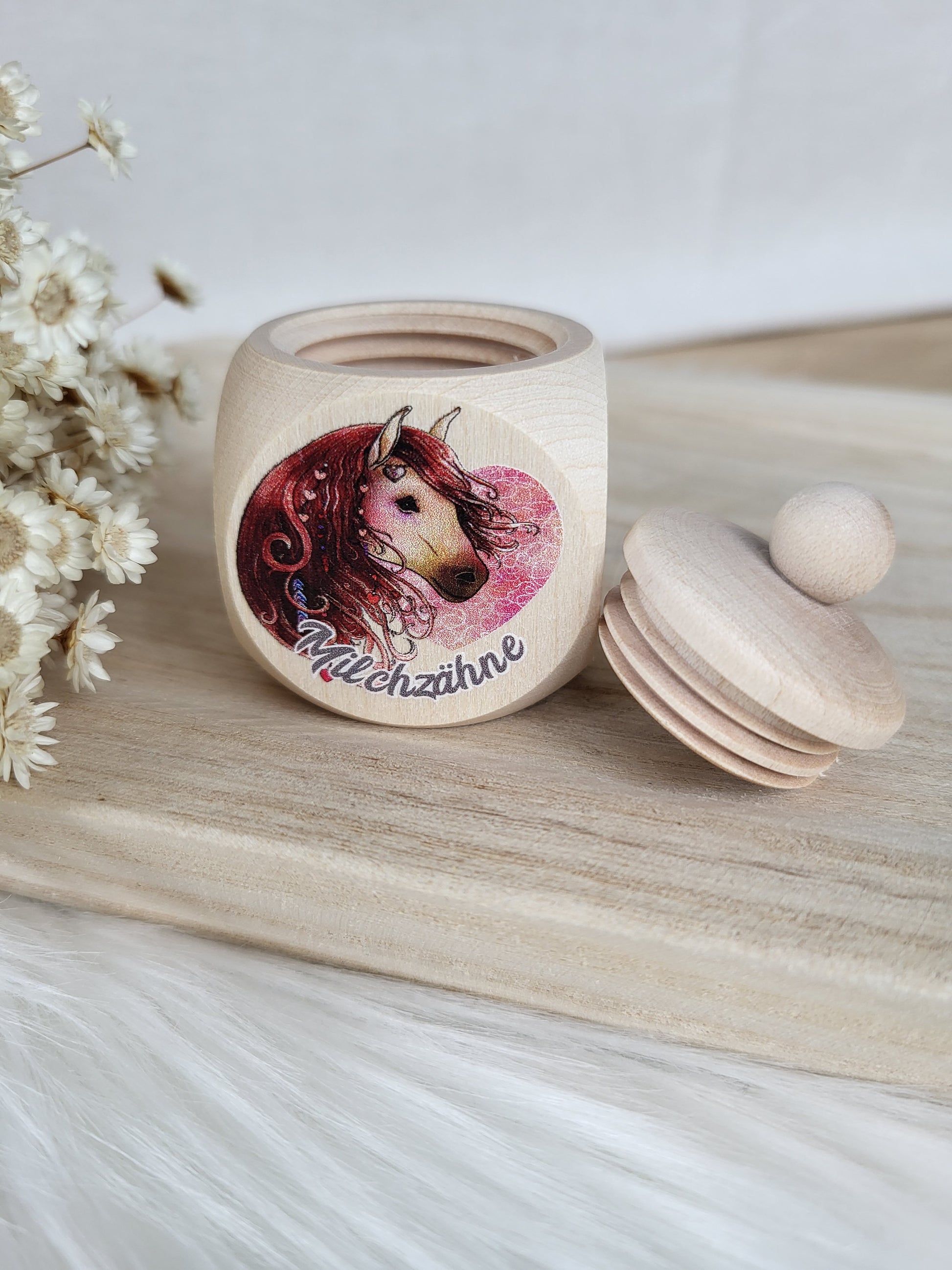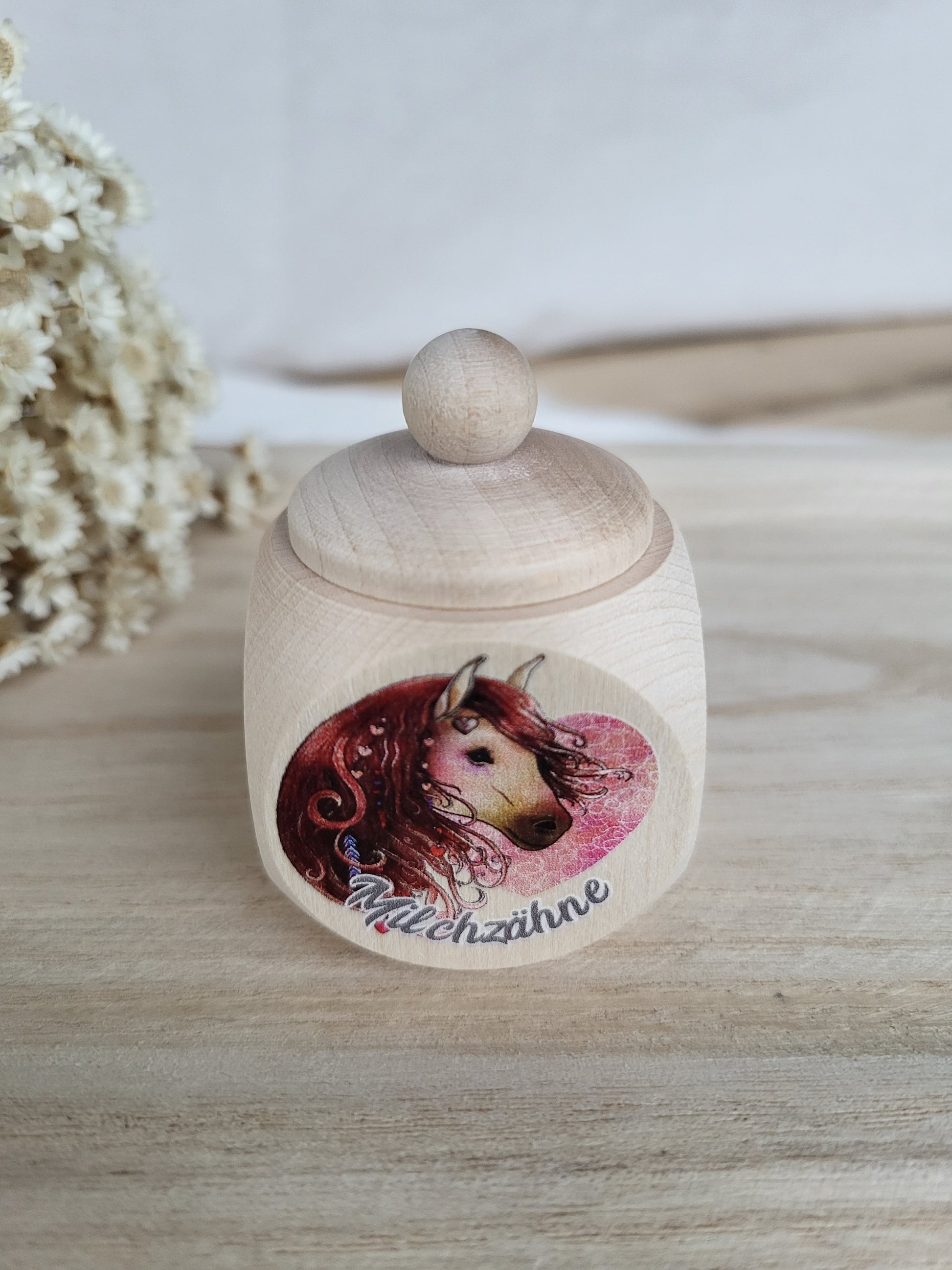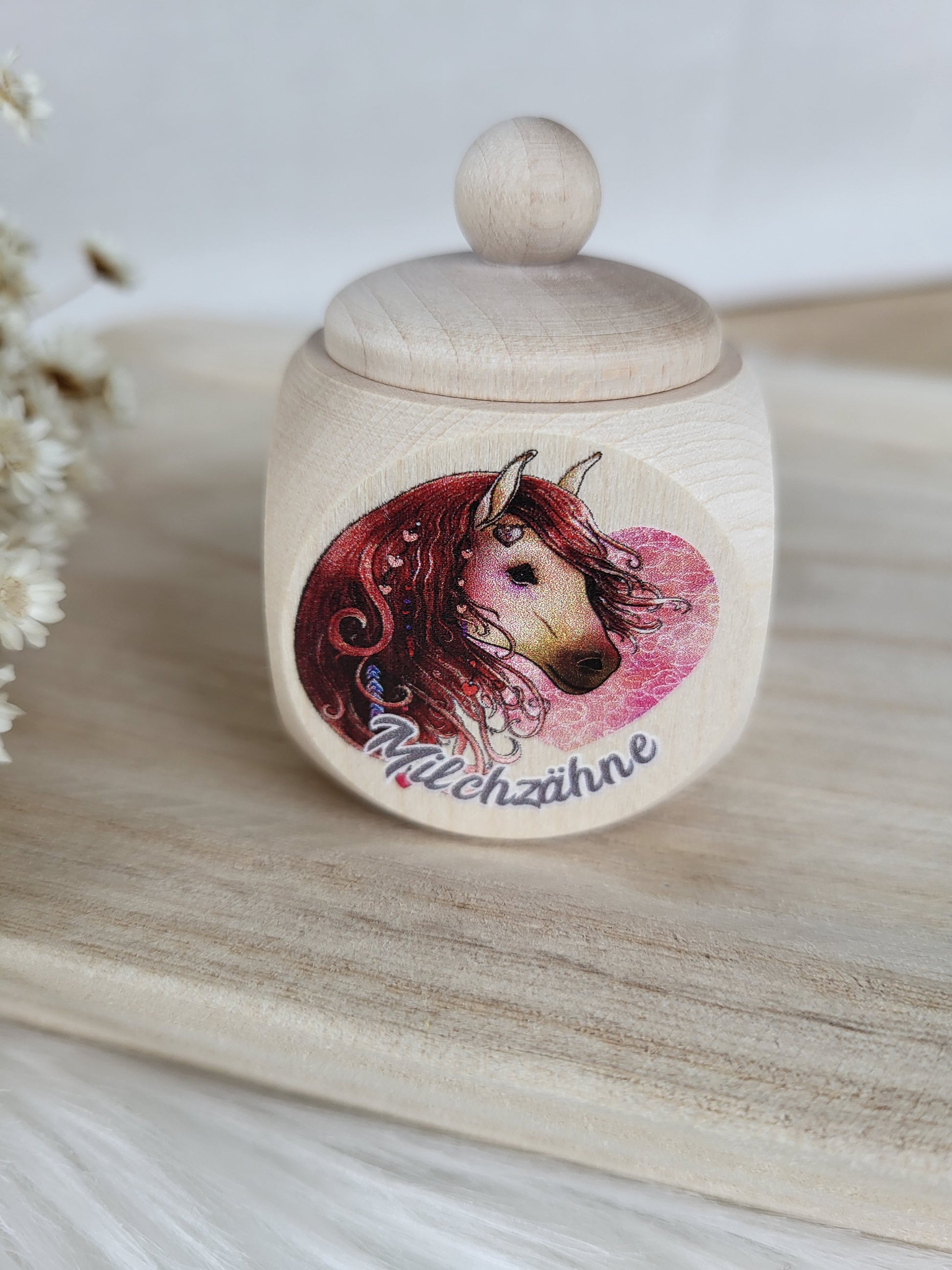 Zauberhafte Milchzahndose mit Pferde Motiv, ein muss für kleine Pferde Fans.